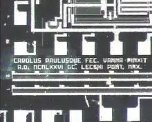A hidden watermark on a semiconductor chip from 1976, acting as a signature of its creators. In an analogous way, JC Venter and his team added watermarks using stop codons to sign their creation.