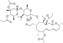 • CC(=O)O[C@H]3/C=C/C=C/C[C@@H](C)OC(=O)C[C@@H](OC(=O)CC)[C@H](OC)[C@@H](O[C@@H]2O[C@H](C)[C@@H](O[C@H]1C[C@@](C)(OC(C)=O)[C@@H](OC(=O)CC)[C@H](C)O1)[C@H](N(C)C)[C@H]2O)[C@@H](CC=O)C[C@H]3C