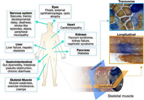 - ↑ "Mitochondrial Myopathy Information Page | National Institute of Neurological Disorders and Stroke". www.ninds.nih.gov. Archived from the original on 2017-02-28. Retrieved 2017-02-28.