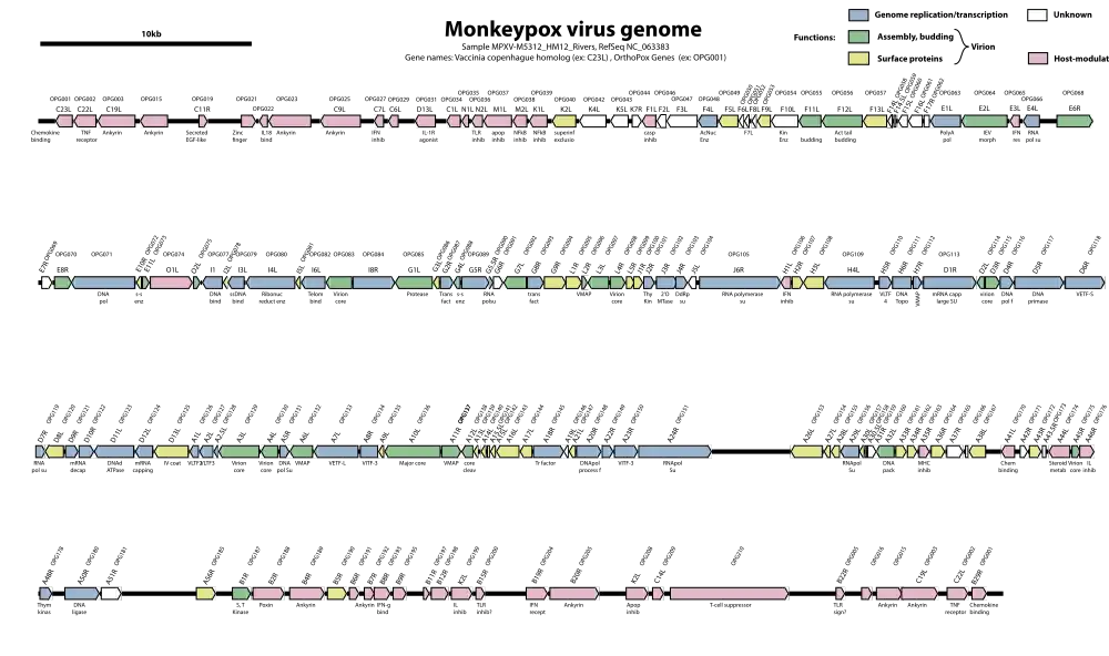 - 1 2 "Monkeypoxvirus genome ~ ViralZone". viralzone.expasy.org. Archived from the original on 2024-01-01. Retrieved 2024-01-01.