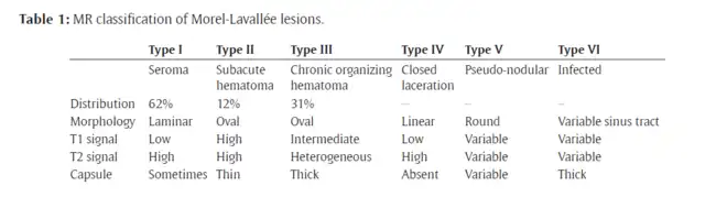- ↑ De Coninck, Tineke; Vanhoenacker, Filip; Verstraete, Koenraad (16 December 2017). "Imaging Features of Morel-Lavallée Lesions". Journal of the Belgian Society of Radiology. 101 (S2): 15. doi:10.5334/jbr-btr.1401.