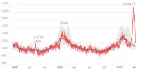 Different institutions and initiatives offer weekly data to monitor excess mortality. Significant efforts to capture short term mortality data have been made along 2020 due to the pandemic of the Coronavirus disease 2019 (COVID-19) and its worldwide effects. Eurostat launched in April 2020 a collection of weekly death data that provide for most of the EU countries weekly death data series by 5-year age groups and sex in NUTS3 regions within the countries starting from the year 2000.[3] This temporary data collection was established in order to support the policy and research efforts related to the COVID-19 pandemic. Data are transmitted by the National Statistical Institutes on voluntary basis and it is being updated, depending on the country, weekly.[4]