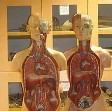 In 1543 Vesalius wrote an anatomical masterwork named in Latin De humani corporis fabrica libri septem ("On the fabric of the human body in seven books"), or in short De Fabrica. The book included drawings of human females and males with their skins dissected.[4] These pictures greatly influenced the creation of future anatomical wax models. The anatomical pictures of Vesalius were followed by those of Johann Vesling ("Veslingius") and Hieronymus Fabricius. By 1600 Fabricius had gathered 300 anatomical paintings and made an anatomical atlas named the Tabulae Pictae. Giulio Cesare Casseri ("Casserius"), Spighelius, and William Harvey are other followers of the pictures of Andreas Vesalius.
