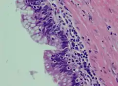 Atypical goblet cells with focal tufting. | |