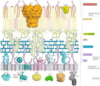 - 1 2 Dulberger CL, Rubin EJ, Boutte CC (January 2020). "The mycobacterial cell envelope - a moving target". Nature Reviews. Microbiology. 18 (1): 47–59. doi:10.1038/s41579-019-0273-7. PMID 31728063. S2CID 208020338.