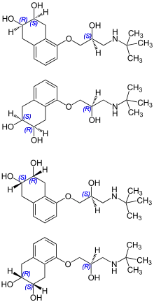 Nadolol is a mixture of stereoisomers. It is polar and hydrophilic, with low lipid solubility.[23]
