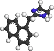 Naphazoline, sold under many brand names, is a medication used to treat a stuffy nose or eye redness due to minor irritation.[1] It is available as a nasal spray or eye drops.[1]