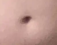 The navel (clinically known as the umbilicus; pl.: umbilici or umbilicuses; commonly known as the belly button or tummy button) is a protruding, flat, or hollowed area on the abdomen at the attachment site of the umbilical cord.[1] All placental mammals have a navel, although it is generally more conspicuous in humans.