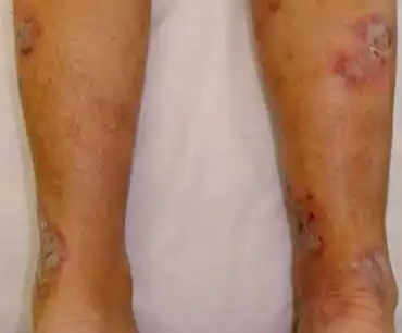 Necrolytic acral erythema is a cutaneous condition that is a manifestation of hepatitis C viral infection or zinc deficiency.[2]