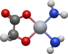 Nedaplatin (INN, marketed under the tradename Aqupla) is a platinum-based antineoplastic drug which is used for cancer chemotherapy.[1] The complex consists of two ammine ligands and the dianion derived from glycolic acid.