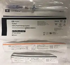 - ↑ Laan, DV; Vu, TD; Thiels, CA; Pandian, TK; Schiller, HJ; Murad, MH; Aho, JM (April 2016). "Chest wall thickness and decompression failure: A systematic review and meta-analysis comparing anatomic locations in needle thoracostomy". Injury. 47 (4): 797–804. doi:10.1016/j.injury.2015.11.045. PMID 26724173.