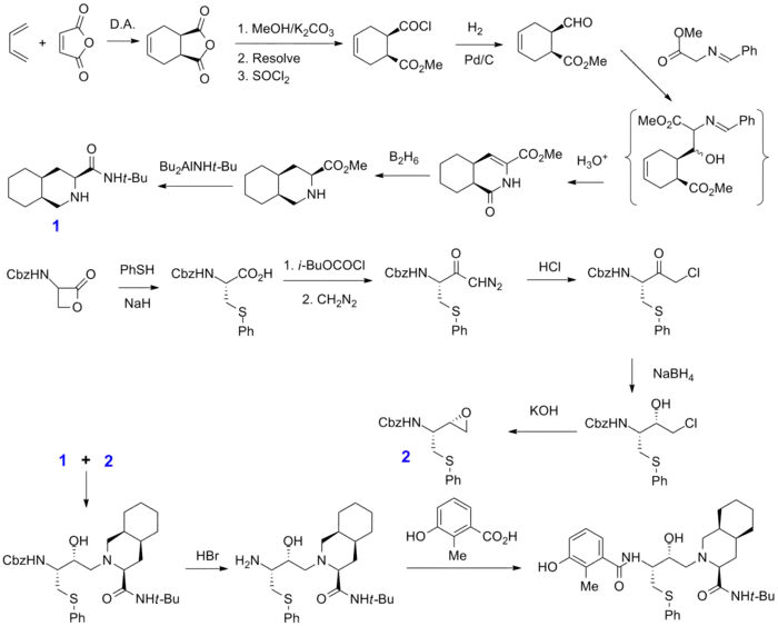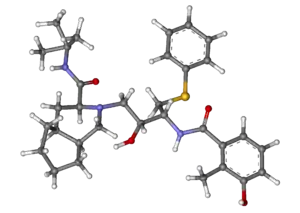 - ↑ Kaldor SW, Kalish VJ, et al. (1997). "Viracept (nelfinavir mesylate, AG1343): A potent, orally bioavailable inhibitor of HIV-1 protease". Journal of Medicinal Chemistry. 40 (24): 3979–3985. doi:10.1021/jm9704098. PMID 9397180.
