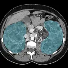 Nephromegaly is the process whereby a kidney or both kidneys become enlarged.[1] Both autosomal dominant and autosomal recessive polycystic kidney disease can cause nephromegaly.