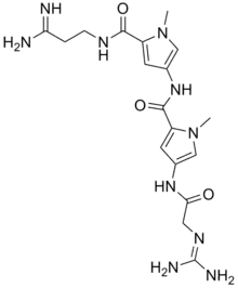Netropsin (also termed congocidine or sinanomycin[1]) is a polyamide with antibiotic and antiviral activity. Netropsin was discovered by Finlay et al., and first isolated from the actinobacterium Streptomyces netropsis.[2] It belongs to the class of pyrrole-amidine antibiotics.