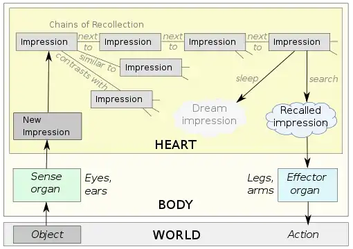 Senses, perception, memory, dreams, action in Aristotle's biology. Impressions are stored in the seat of perception, linked by his Laws of Association (similarity, contrast, and contiguity).[7]