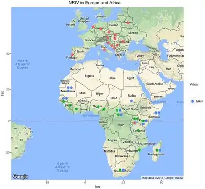 The virus has been reported primarily in African countries which include Mauritania, Senegal, Sudan, Central African Republic, DRC, Kenya, Somalia, South Africa, and Madagascar.[3]
