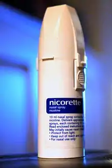 - ↑ Chaplin S (July 2011). "Nicorette QuickMist: rapidly absorbed NRT mouthspray". Prescriber. 22 (13–14): 26–28. doi:10.1002/psb.776. S2CID 70725893.