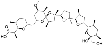 - ↑ Steinrauf LK, Pinkerton M, Chamberlin JW (1968). "The structure of nigericin". Biochem. Biophys. Res. Commun. 33 (1): 29–31. doi:10.1016/0006-291X(68)90249-0. PMID 5696503.