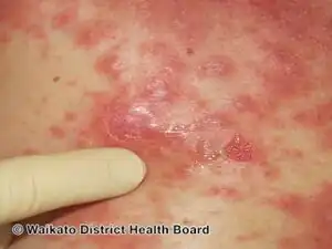 - 1 2 Moss C, Gupta E (September 1998). "The Nikolsky sign in staphylococcal scalded skin syndrome". Arch. Dis. Child. 79 (3): 290. doi:10.1136/adc.79.3.290. PMC 1717681. PMID 9875032.