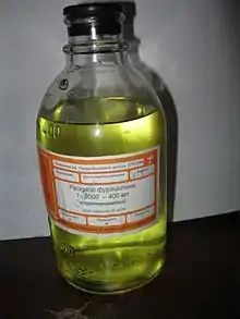 Drugstore-made ~400 mL aqueous solution of Furacilin (Russian: Фурацилин, nitrofural), 1 : 5000 (0.2 mg/mL or 0.02%), ready for topical use.