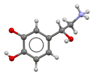 ![]() Ball-and-stick model of the zwitterionic form of noradrenaline found in the crystal structure[1] | |