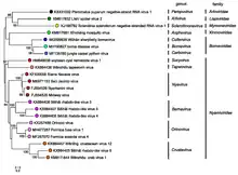 Nyamiviridae is a family of negative-strand RNA viruses in the order Mononegavirales.[1] Ecdysozoa and birds serve as natural hosts.[2] The name is a portmanteau of Nyamanini Pan (place of isolation of type species Nyamanini virus in South Africa) and Midway Atoll (place of isolation of Midway virus in the United States) and the suffix -viridae used to denote a virus family. There are seven genera in this family.[3][4]