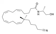 - ↑ Di Marzo V, et al. (February 2001). "Highly selective CB1 cannabinoid receptor ligands and novel CB1/VR1 vanilloid receptor "hybrid" ligands". Biochemical and Biophysical Research Communications. 281 (2): 444–51. doi:10.1006/bbrc.2001.4354. PMID 11181068.