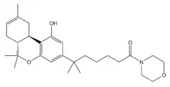 - ↑ Martin BR, Wiley JL, Beletskaya I, Sim-Selley LJ, Smith FL, Dewey WL, Cottney J, Adams J, Baker J, Hill D, Saha B, Zerkowski J, Mahadevan A, Razdan RK (September 2006). "Pharmacological characterization of novel water-soluble cannabinoids". The Journal of Pharmacology and Experimental Therapeutics. 318 (3): 1230–9. doi:10.1124/jpet.106.104109. PMID 16757541. S2CID 14864925.