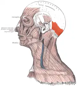 - Position of occipitalis muscle (shown in red).