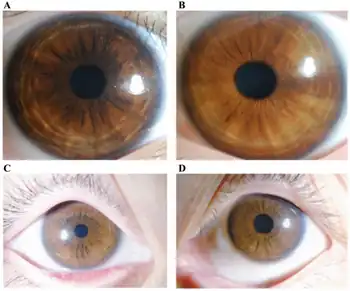 Ocular albinism is a form of albinism which, in contrast to oculocutaneous albinism, presents primarily in the eyes.[1] There are multiple forms of ocular albinism, which are clinically similar.[2]: 865