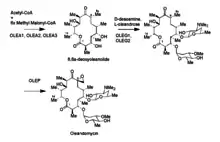- 1 2 Rawlings BJ (June 2001). "Type I polyketide biosynthesis in bacteria (part B)". Natural Product Reports. 18 (3): 231–81. doi:10.1039/b100191o. PMID 11476481.