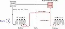 ignored (help) - ↑ Guinan, JJ.; Warr, WB.; Norris, BE. (Dec 1983). "Differential olivocochlear projections from lateral versus medial zones of the superior olivary complex". J Comp Neurol. 221 (3): 358–70. doi:10.1002/cne.902210310. PMID 6655089. S2CID 20885545.
