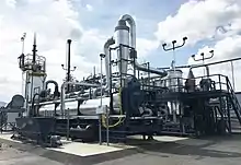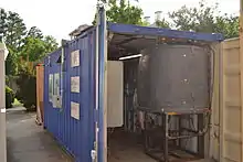 The U.S.-based company Sedron Technologies (formerly Janicki Bioenergy) presented in 2014 a prototype using combustion. Their process is a sewage sludge treatment system that produces drinking water and electrical energy as end products from sewage sludge.[6] Manufactured by Sedron Technologies, the proof of concept model was funded by the Bill and Melinda Gates Foundation. The S100 prototype model can produce 10,800 liters of drinking water per day and 100 kW net electricity. A larger model under development, the S200, is designed to handle the waste from 100,000 people, produce 86,000 liters of drinking water per day and 250 kW net output electricity. These systems are designed to provide a "self-sustaining bioenergy" process.[7][8]
