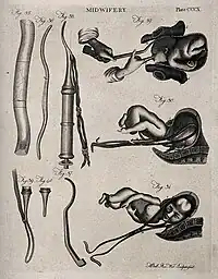 ![]() Nine diagrams illustrating breech and natural births and the obstetrical instruments used to assist them circa 1800s | |