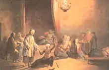 Recreational use of opium was part of a civilized and mannered ritual, akin to an East Asian tea ceremony, prior to the extensive prohibitions that came later.[44] In places of gathering, often tea shops, or a person's home servings of opium were offered as a form of greeting and politeness. Often served with tea (in China) and with specific and fine utensils and beautifully carved wooden pipes. The wealthier the smoker, the finer and more expensive material used in ceremony.[44] The image of seedy underground, destitute smokers were often generated by anti-opium narratives and became a more accurate image of opium use following the effects of large scale opium prohibition in the 1880s.[44]