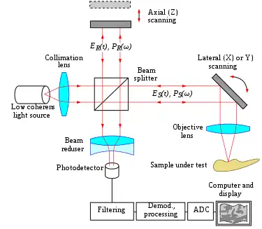 - ↑ Leitgeb R, Hitzenberger C, Fercher A (April 2003). "Performance of fourier domain vs. time domain optical coherence tomography". Optics Express. 11 (8): 889–894. Bibcode:2003OExpr..11..889L. doi:10.1364/oe.11.000889. PMID 19461802.