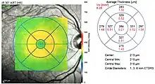 - ↑ Keane PA, Patel PJ, Liakopoulos S, Heussen FM, Sadda SR, Tufail A (September 2012). "Evaluation of age-related macular degeneration with optical coherence tomography". Survey of Ophthalmology. 57 (5): 389–414. doi:10.1016/j.survophthal.2012.01.006. PMID 22898648.