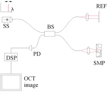- ↑ Choma M, Sarunic M, Yang C, Izatt J (September 2003). "Sensitivity advantage of swept source and Fourier domain optical coherence tomography". Optics Express. 11 (18): 2183–2189. Bibcode:2003OExpr..11.2183C. doi:10.1364/oe.11.002183. PMID 19466106.