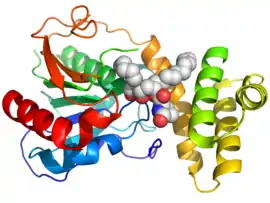 - ↑ PDB: 2PX6; Pemble CW, Johnson LC, Kridel SJ, Lowther WT (August 2007). "Crystal structure of the thioesterase domain of human fatty acid synthase inhibited by Orlistat". Nat. Struct. Mol. Biol. 14 (8): 704–9. doi:10.1038/nsmb1265. PMID 17618296. S2CID 2105534.