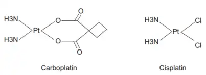 Cisplatin is known as a platinum coordination complex. Carboplatin and oxaliplatin also belong to platinum coordination complexes, but they are less commonly associated with ototoxicity. These agents are used in the treatment of ovarian, head and neck, bladder, lung and colon cancers. Cisplatin and other platinum coordination complexes work by reacting with various sites on DNA in mainly cancer cells in order to form cross-links. The formed DNA-platinum complexes inhibit replication and transcription, leading to miscoding and cell death.[5]