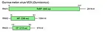 Ourmiavirus is a genus of positive-strand RNA viruses.[1] Cucurbits, cherry, and cassava serve as natural hosts. There are three species in this genus.[2][3] Diseases associated with this genus include: OuMV: yellowing and chlorotic spot symptoms.[2][4]
