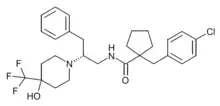 PF-04745637 is a drug which acts as a potent and selective antagonist for the TRPA1 receptor, with an IC50 of 17nM, vs ~3μM at the related TRPV1 and TRPM channels. It has antiinflammatory effects and was developed as a potential treatment for conditions such as atopic dermatitis.[1]