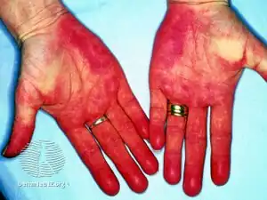 - ↑ Saario R, Kalliomaki JL (Dec 1985), "Palmar erythema in rheumatoid arthritis", Clin Rheumatol., vol. 4, no. 4, pp. 449–51, doi:10.1007/BF02031898, PMID 3830522