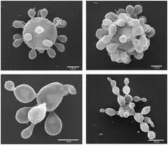 - ↑ Gonzalez, Angel; Hernandez, Orville (2016). "New insights into a complex fungal pathogen: the case of Paracoccidioides spp". Yeast. 33 (4): 113–128. doi:10.1002/yea.3147. PMID 26683539.