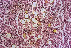 More than 40 species of Paragonimus have been identified; 10 of these are known to cause disease in humans.[6] The most common cause of human paragonimiasis is P. westermani, the oriental lung fluke.[7]