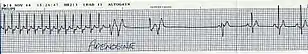 Lead II electrocardiogram strip showing PSVT with a heart rate of about 180. | |
