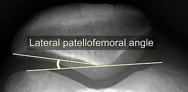 - The lateral patellofemoral angle, formed by:[16]