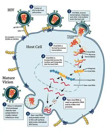 - ↑ Cooper, Arik; García, Mayra; Petrovas, Constantinos; Yamamoto, Takuya; Koup, Richard A.; Nabel, Gary J. (2013-06-20). "HIV-1 causes CD4 cell death through DNA-dependent protein kinase during viral integration". Nature. 498 (7454): 376–379. Bibcode:2013Natur.498..376C. doi:10.1038/nature12274. ISSN 1476-4687. PMID 23739328. S2CID 4331149. Archived from the original on 2022-04-08. Retrieved 2022-01-14.