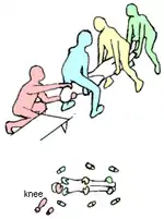 3. he/she then puts the wheelchair, or deals with the causality's legs as a fourth team member pushes the stretcher.