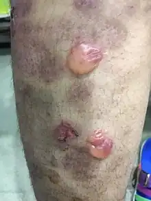 28. Marazza G, Pham HC, Schärer L, Pedrazzetti PP, Hunziker T, Trüeb RM, et al. (October 2009). "Incidence of bullous pemphigoid and pemphigus in Switzerland: a 2-year prospective study". The British Journal of Dermatology. 161 (4): 861–8. doi:10.1111/j.1365-2133.2009.09300.x. PMID 19566661. S2CID 30118554.